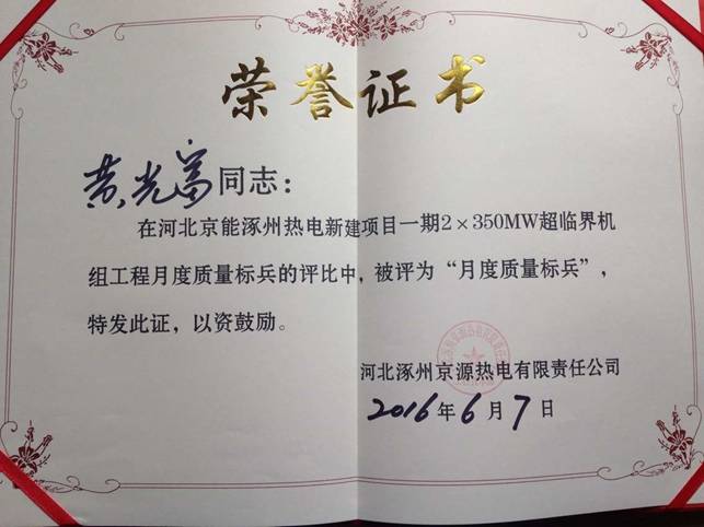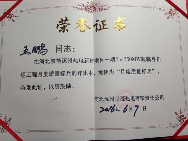 涿州項目部三名同志獲得業(yè)主“月度質量標兵”榮譽表彰