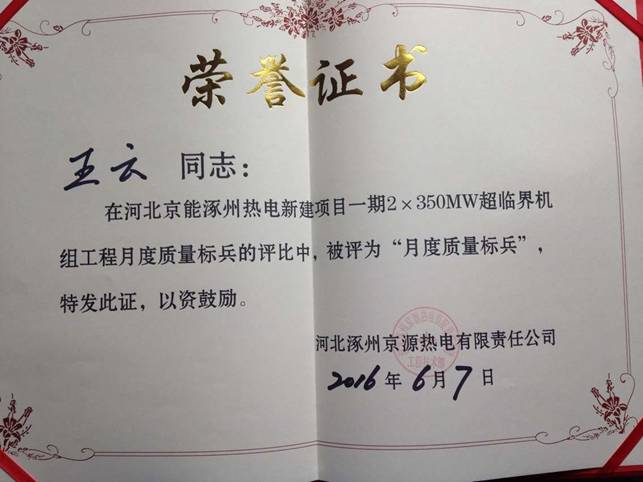 涿州項目部王鵬、王云、黃光富三名同志獲得業(yè)主“月度質量標兵”榮譽表彰!