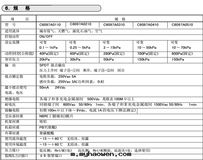 Azbil(山武)壓力開(kāi)關(guān)C6097A0310
